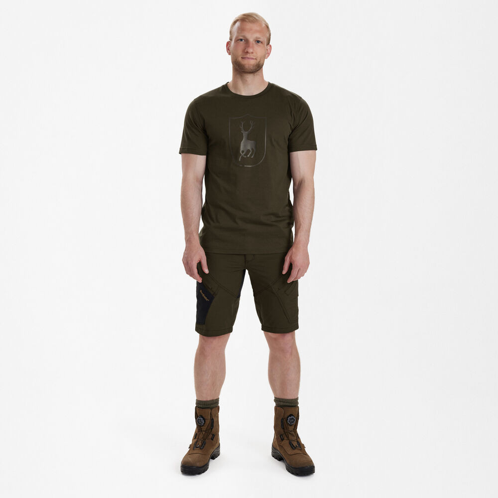 Štýlové tričko s okrúhlym výstrihom s logom Deerhunter spája minimalistický dizajn s mäkkým a pohodlným materiálom vďaka zmesi bavlny a polyesteru. Dodáva sa v rade neutrálnych farieb a klasického strihu, takže sa ľahko nosí so zvyškom vášho outdoorového a loveckého šatníka.